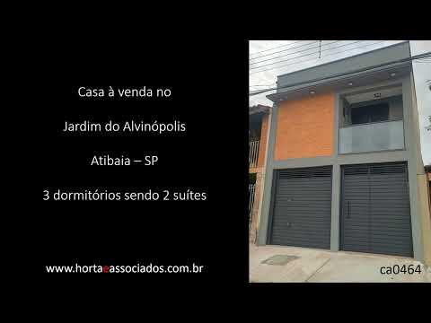 Casa em Atibaia-SP, no Jardim do Alvinópolis, com 3 dormitórios, sendo 2 suítes, banheiro social, sala de estar e jantar, cozinha, área gourmet com lavabo, área de serviço, quintal e vagas cobertas para 2 autos..